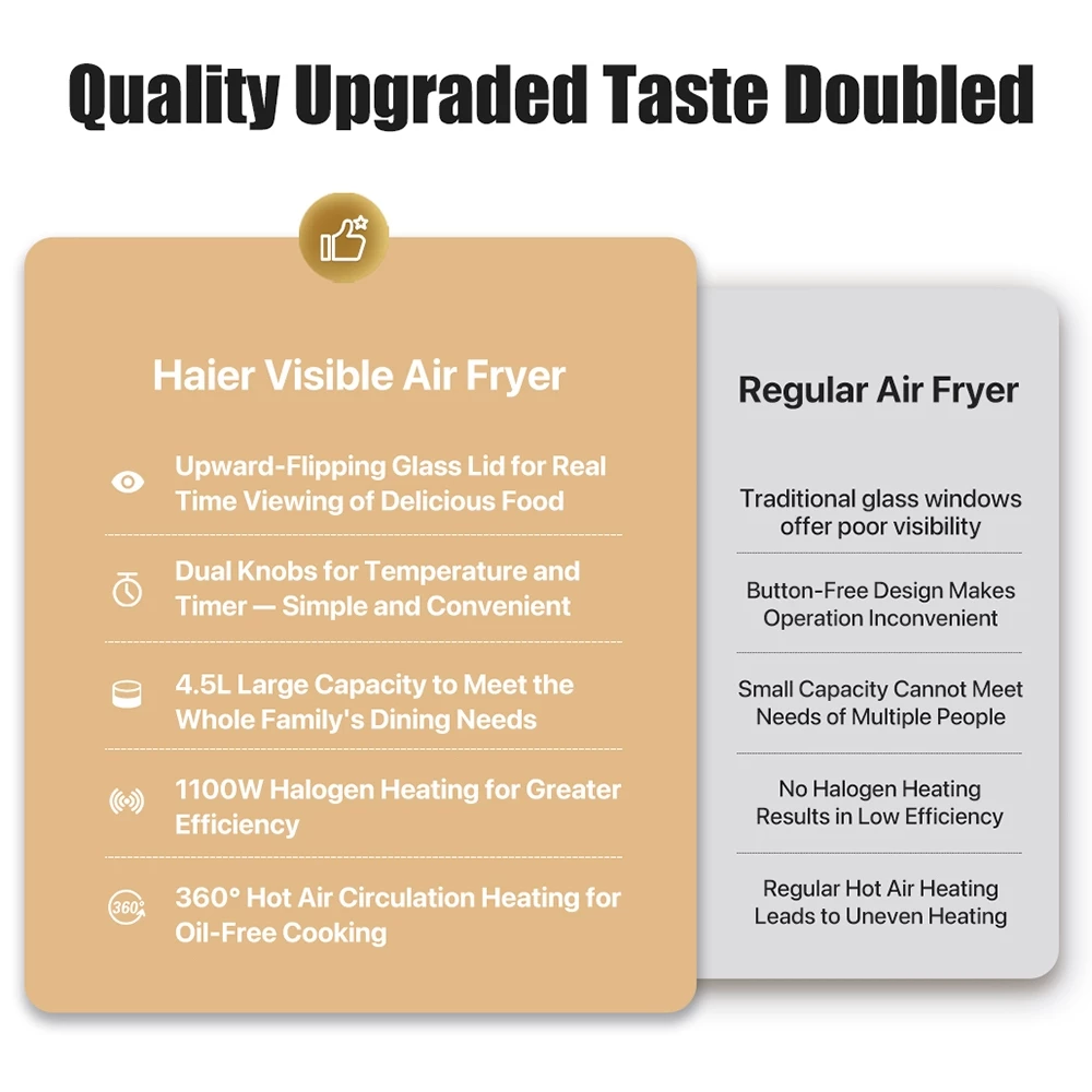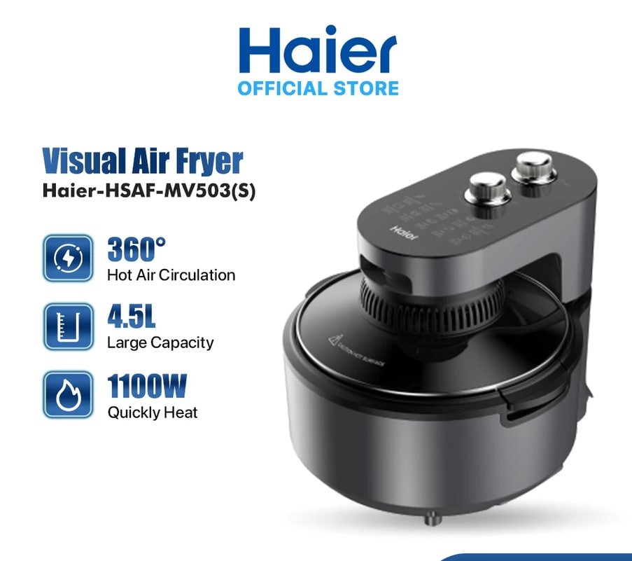 Haier Visual Air Fryer Oil Free Non Stick 4.5L Large Capacity Dual Rotary Knob Air Fryer