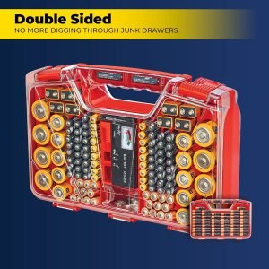[Today’s Special Price]Ontel Battery Daddy – Battery Organizer Storage Case with Tester, Stores & Protects Up to 180 Batteries, Clear Locking Lid, As Seen On TV