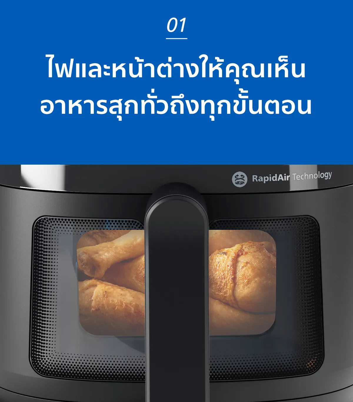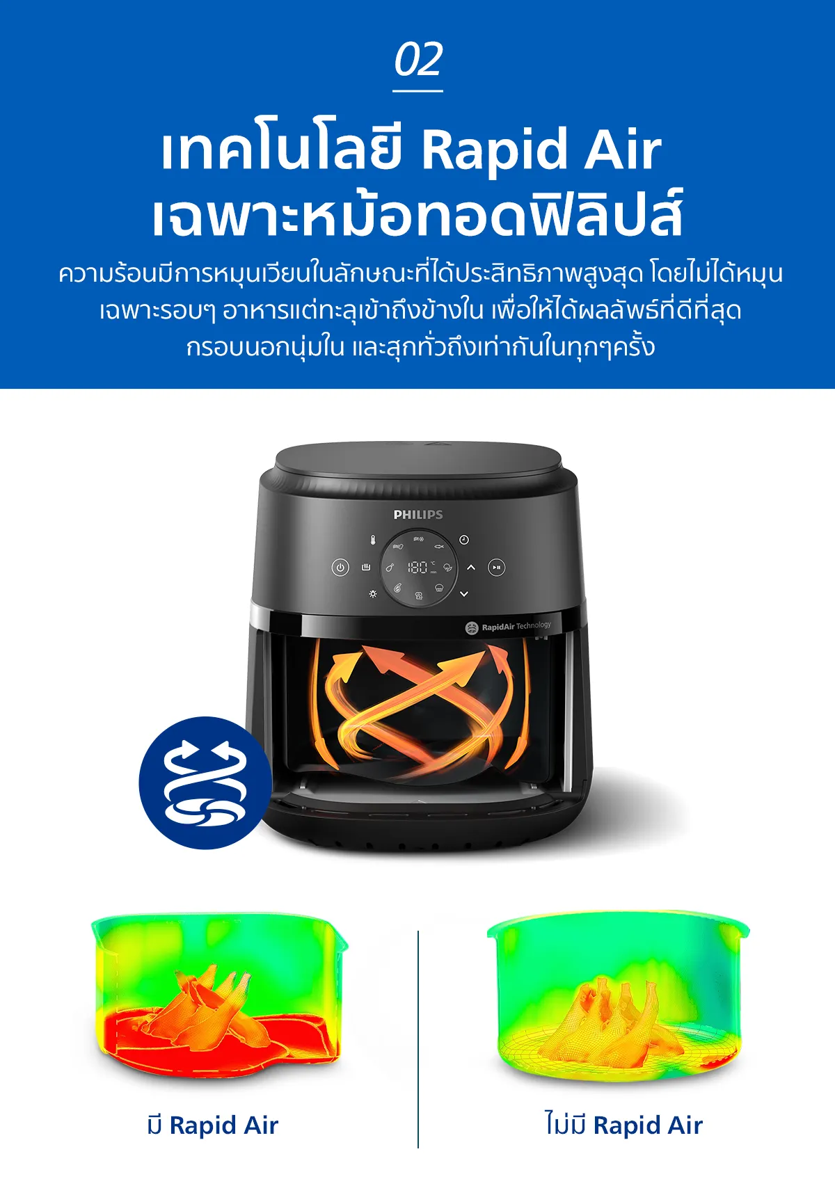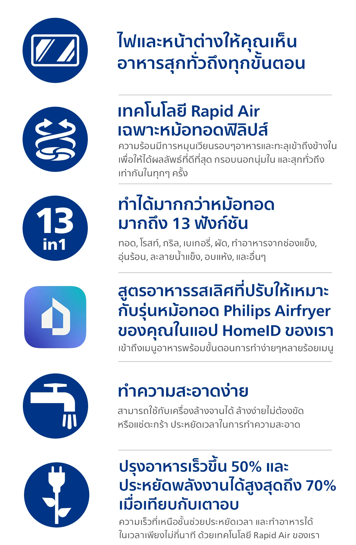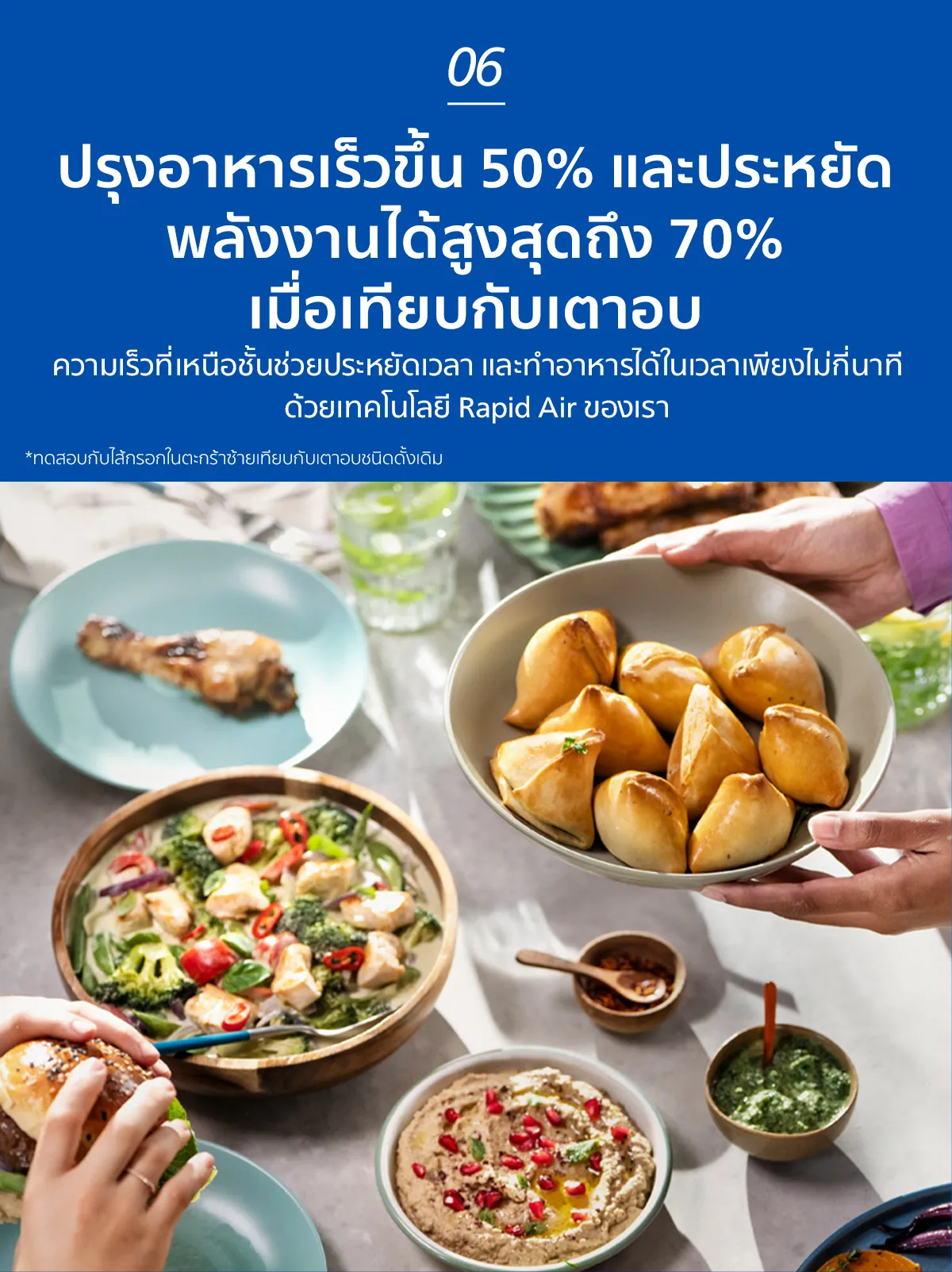 ทำอาหารเร็วขึ้นสูงสุด 50% พร้อมประหยัดพลังงานสูงสุด 70% เมื่อทำอาหารด้วย Philips Airfryer แทนเตาอบของคุณ