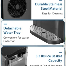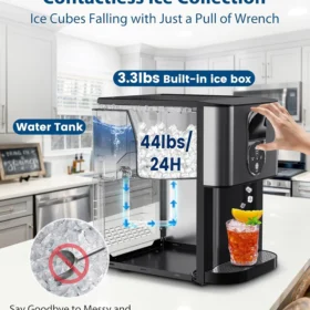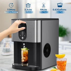 It produces soft, chewy ice cubes in 15 minutes and can produce up to 44 pounds of ice per day. Perfect for parties, families, or office use.